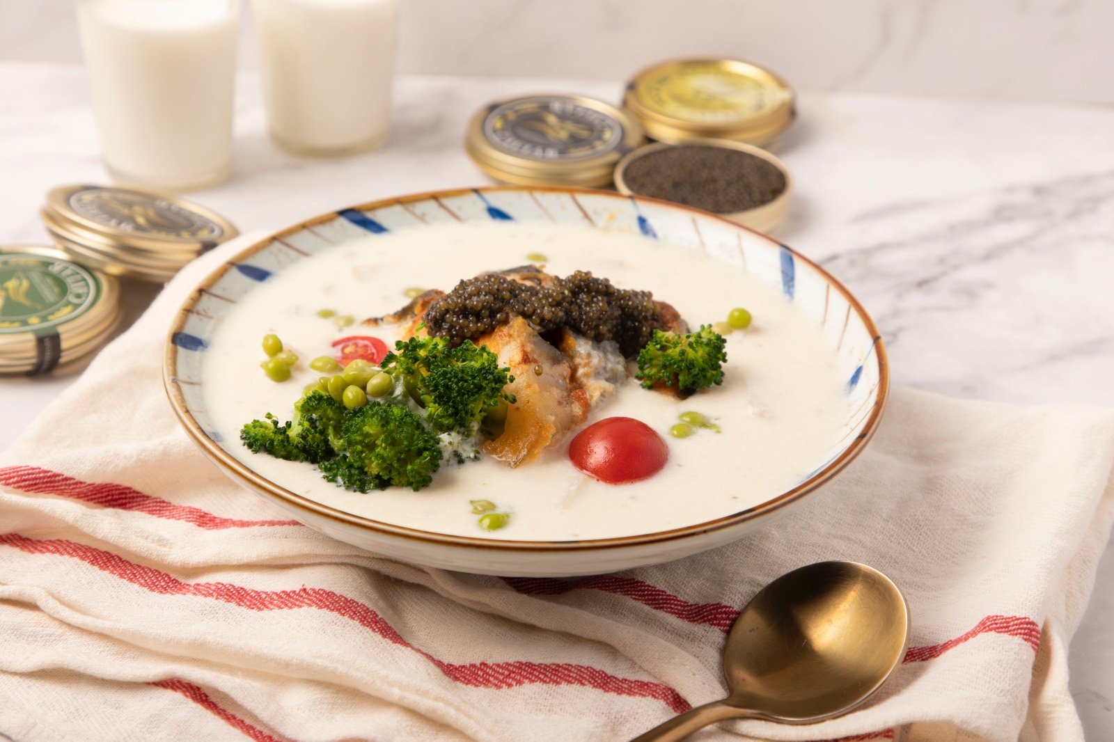 首頁 9 頂級魚子醬 頂級魚子醬 3種魚子醬食用方法: 1.魚子醬可先將放置於室溫退冰約10-15分鐘 魚子醬開罐方式 2.以貝母湯匙或塑料湯匙挖取約十元硬幣大小得魚子醬 3.將魚子醬放置於虎口上,約5秒鐘再送入口中 此舉可讓魚子醬慢慢接近人體溫度,使魚子醬送入口中時是最舒服的溫度,再用舌頭慢慢將魚子擠到上顎處,享受顆粒飽滿的口感,流出的蛋白質會沖淡鹹味,進而享受魚子醬的鮮美。 食用魚子醬時應避免使用金屬器皿或湯匙,並不要把魚子醬放在過熱的食物上,避免影響口感。更多魚子醬的小知識