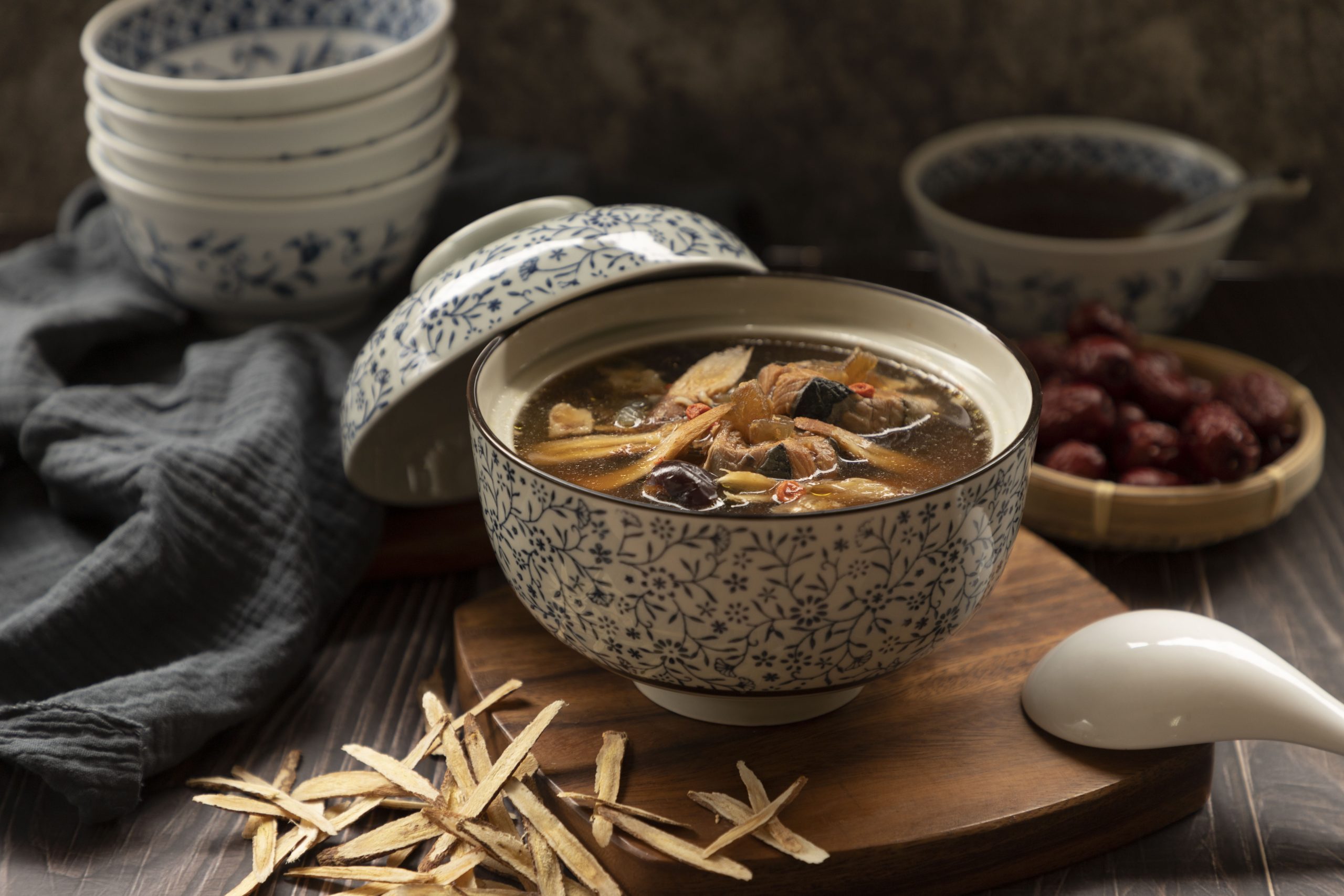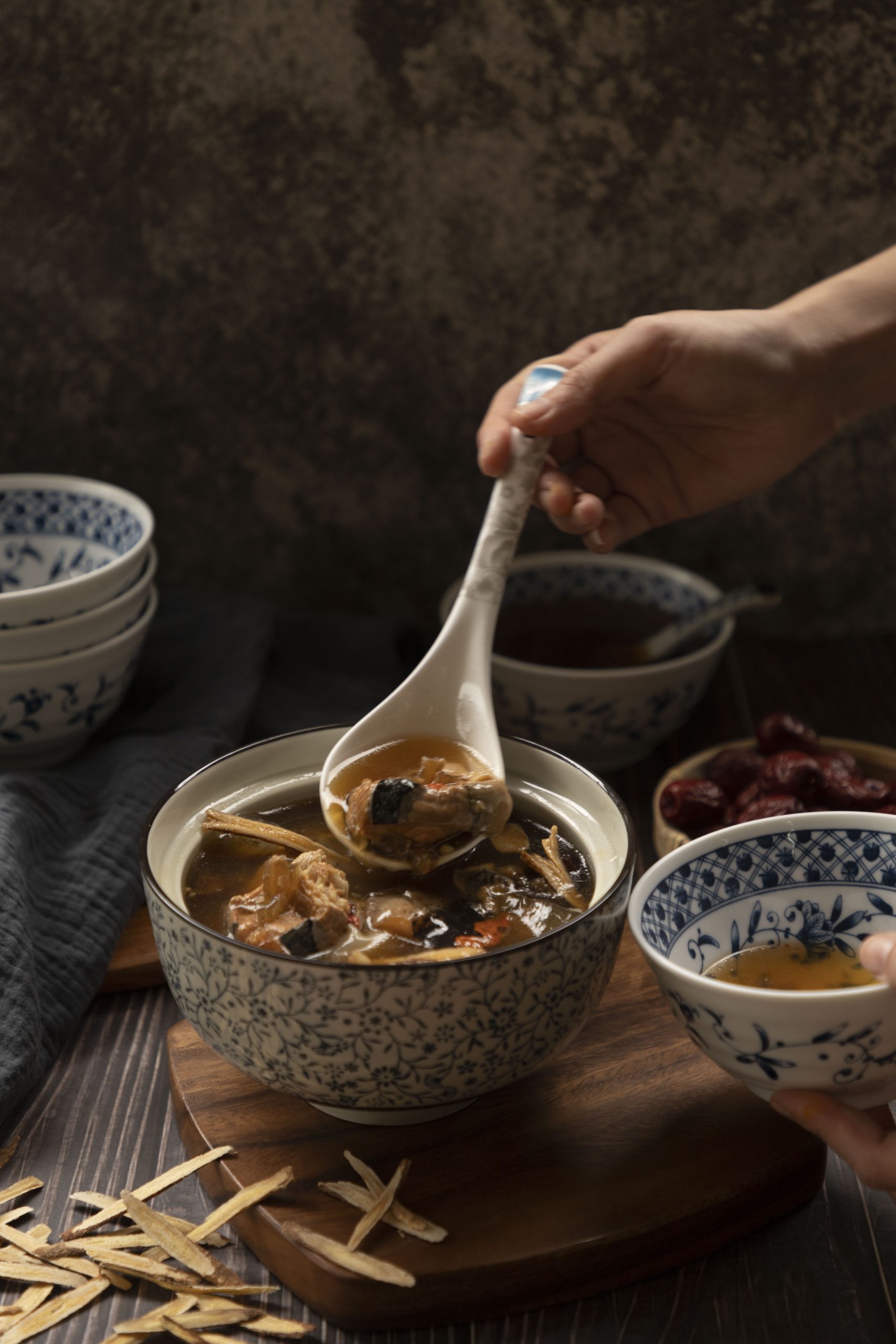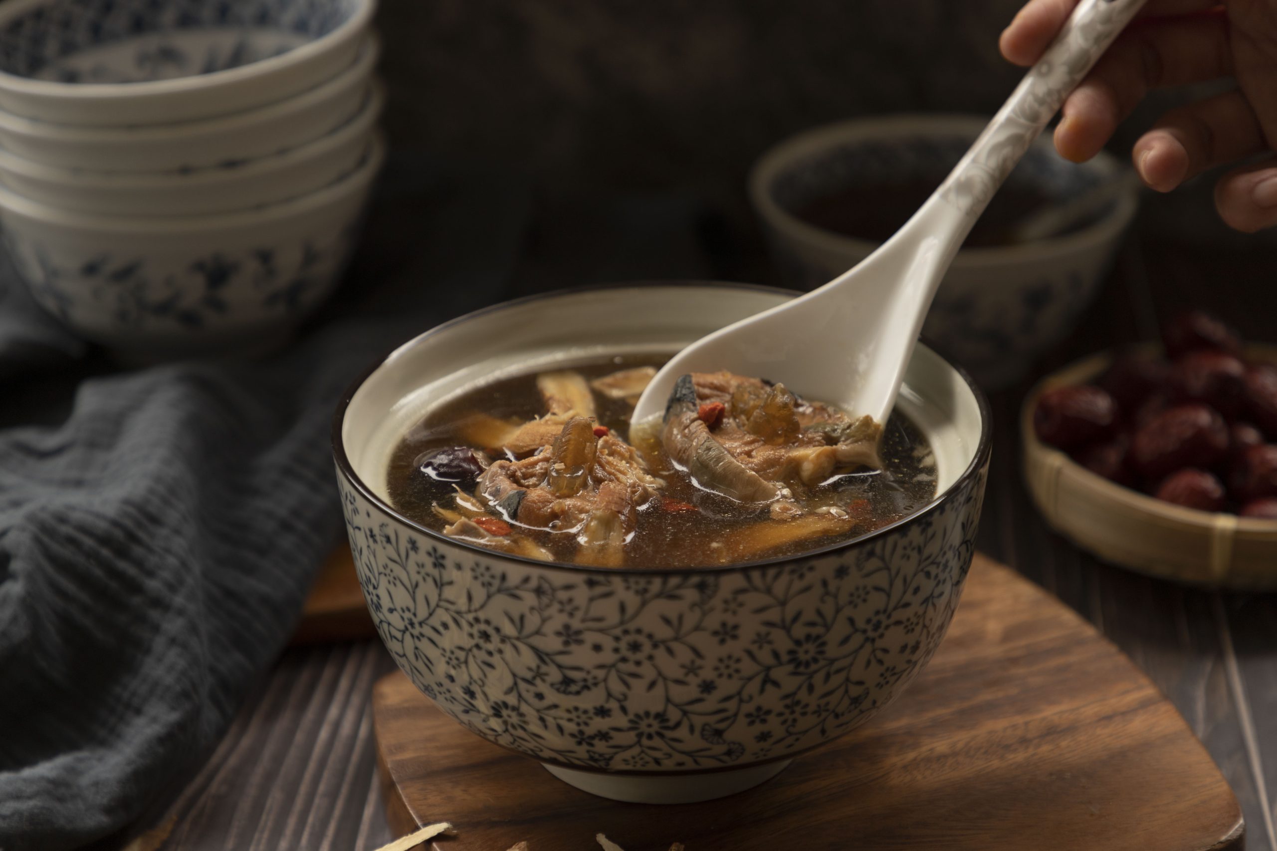 首頁 9 鱘龍御膳養生湯 鱘龍御膳養生湯 湯包退冰後,用電鍋、微波爐加熱即可食用。 加入麵線,即可搭配出滿足味蕾的御膳養生湯麵線! 加入麵線,即可搭配出滿足味蕾的御膳養生湯麵線! 養生湯搭配杏鮑菇加熱,做成杏鮑菇御膳養生湯,是營養豐富的進補好料理!
